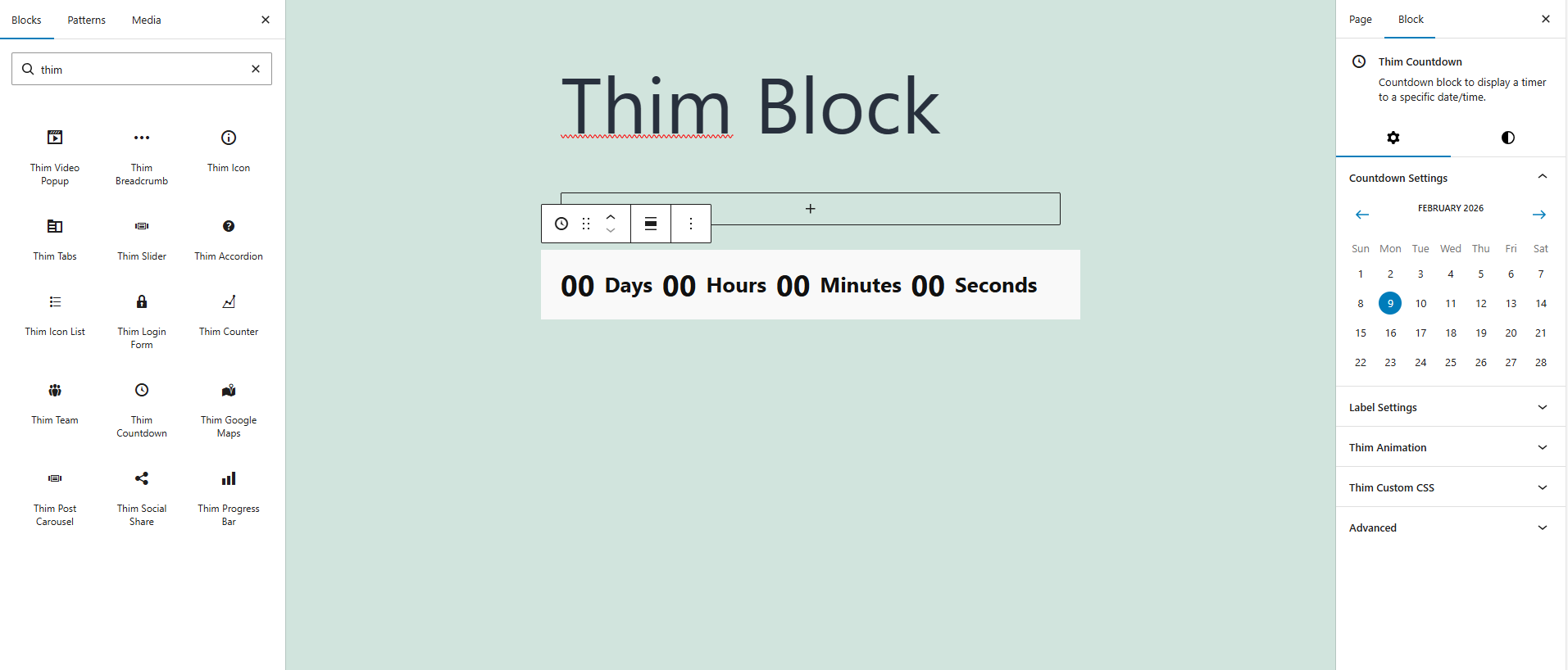 The Thim Countdown block allows you to display a real-time countdown timer to a specific date and time.