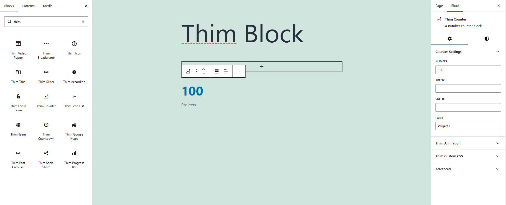 Thim Counter Block is used to display statistical numbers such as projects, clients, or achievements. It is commonly used in:
