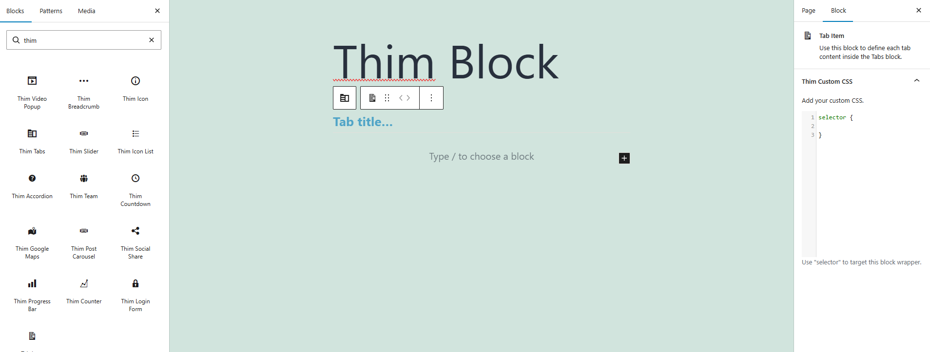 The Thim Tabs Block allows you to organize content into multiple tabs, improving readability and user experience by grouping related information.